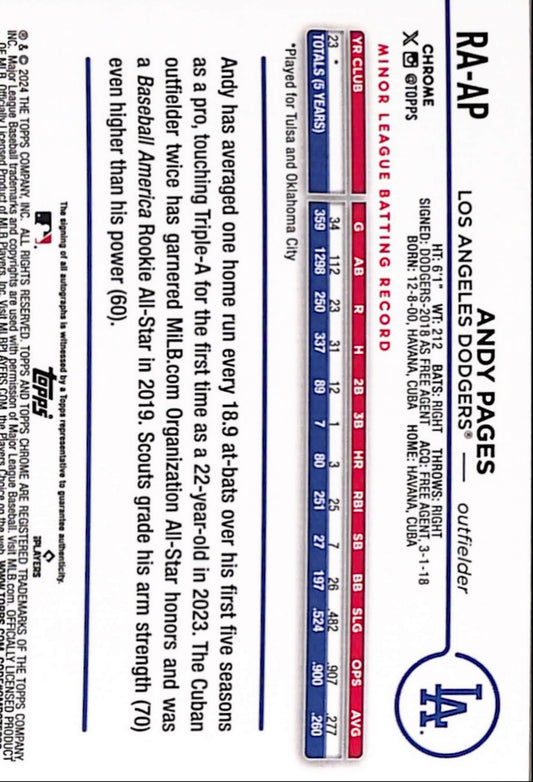 Andy Pages 2024 Topps Chrome Rookie Auto Gold Refractor #29/50Regular price $180.00 USDRegular priceUnit price / per