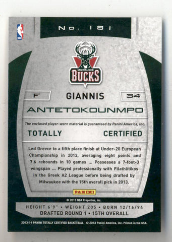Giannis Antetokounmpo 2013 Totally Certified Auto Jersey RC