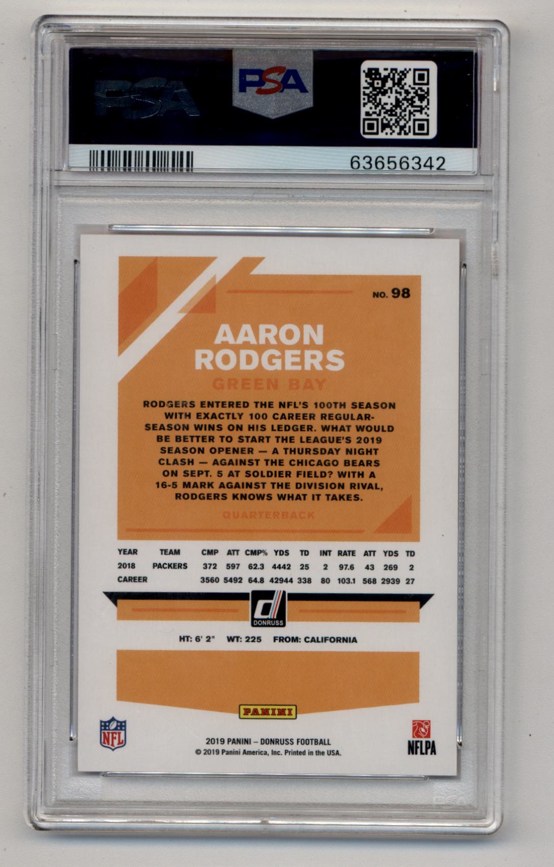 Aaron Rodgers 2019 Donruss Aaron Rodgers Jersey Number 01/12 #98 PSA 10 Gem Mint