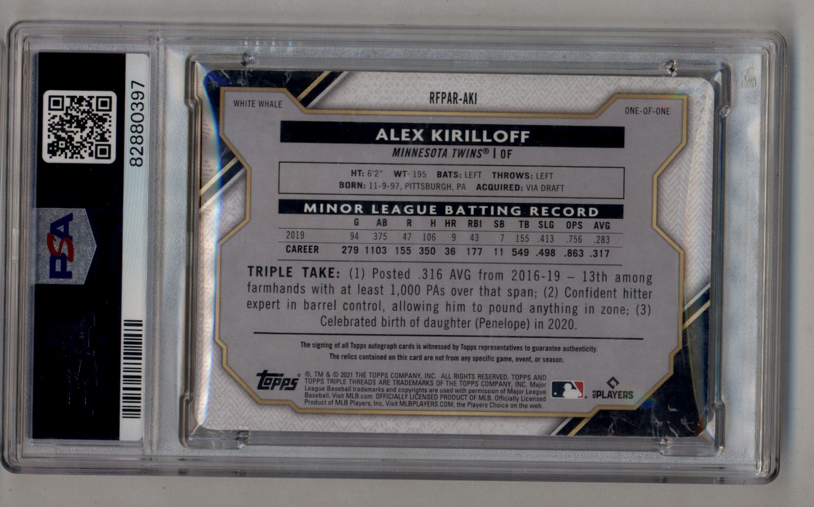 Alex Kirilloff 2021 Topps Triple Threads Printing Plate Relic Auto 1/1 PSA Authentic