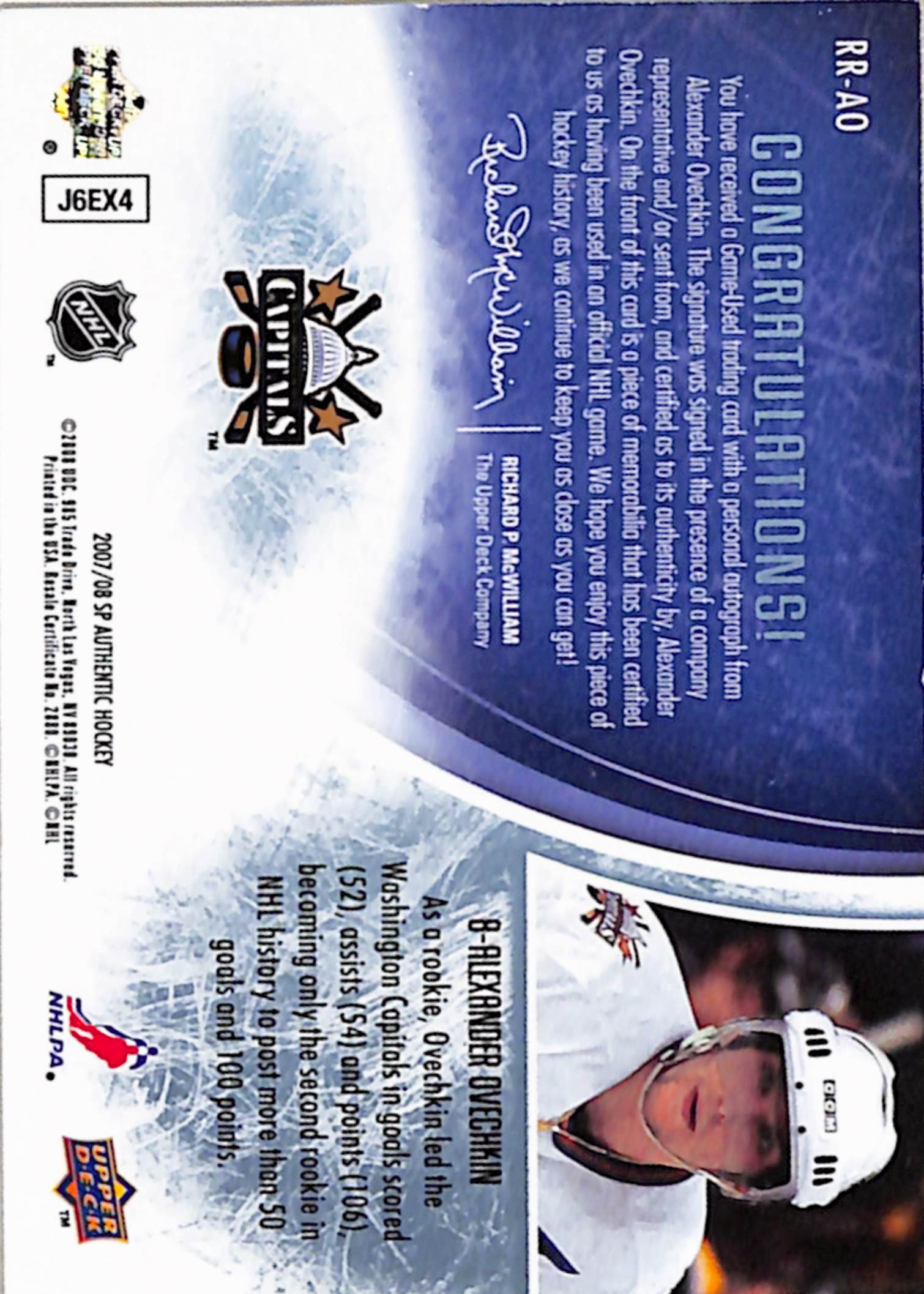 Alex Ovechkin 2007 Upper Deck SP Authentic Rookie Review Patch Auto #19/100