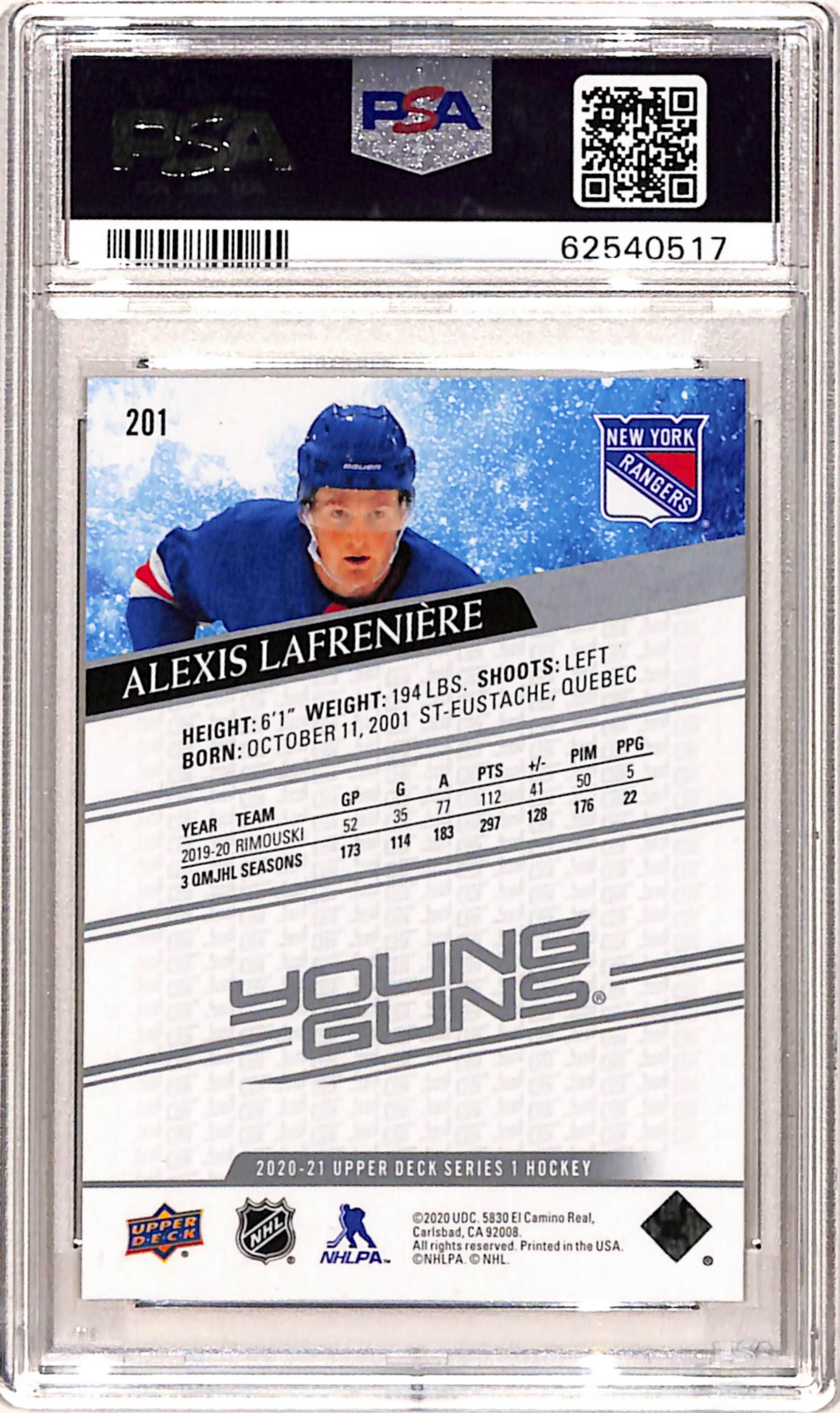 Alexis Lafreniere 2020 Upper Deck Rookie #201 PSA 10 Gem Mint 0517
