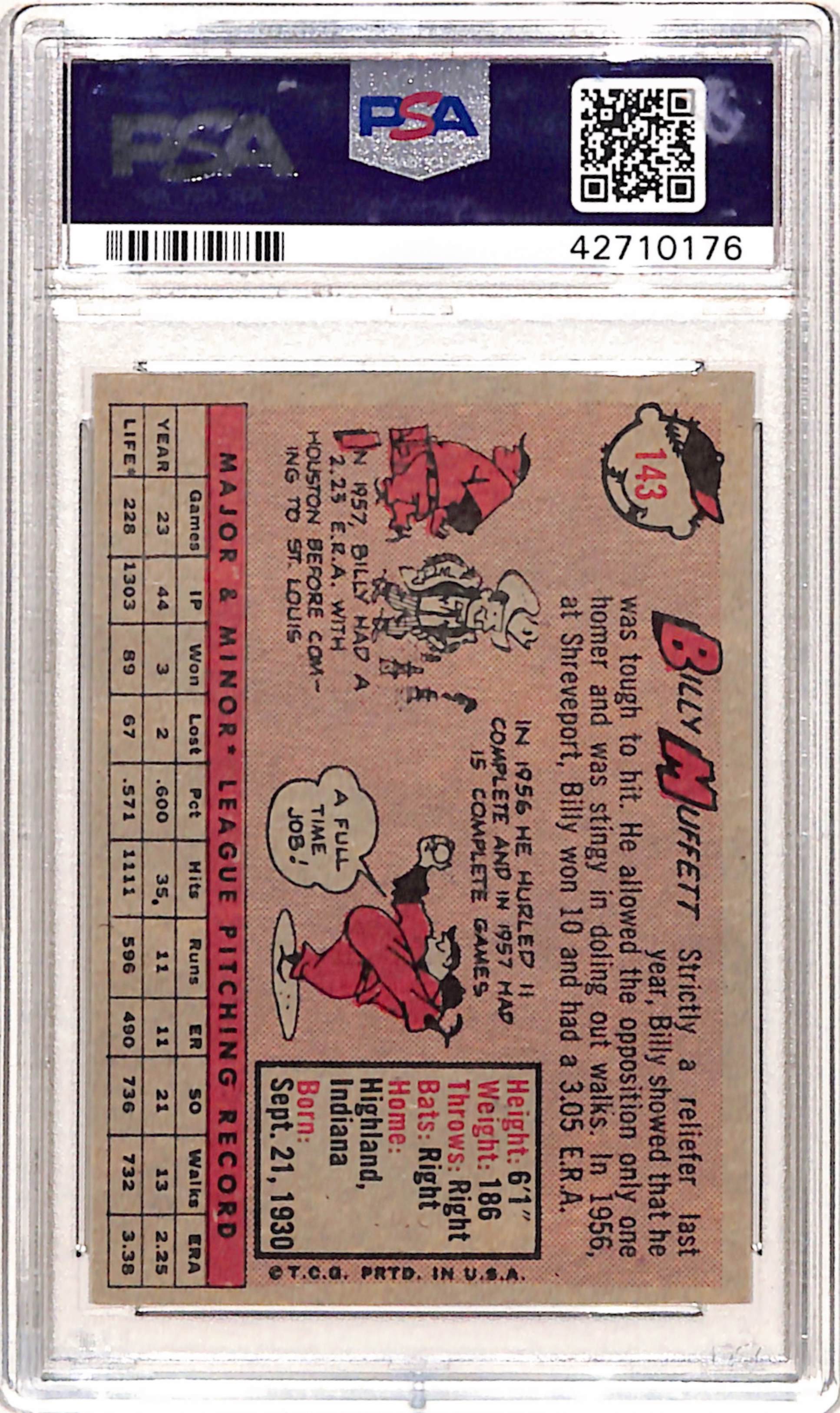 Billy Muffett 1958 Topps #143 PSA 9 Mint