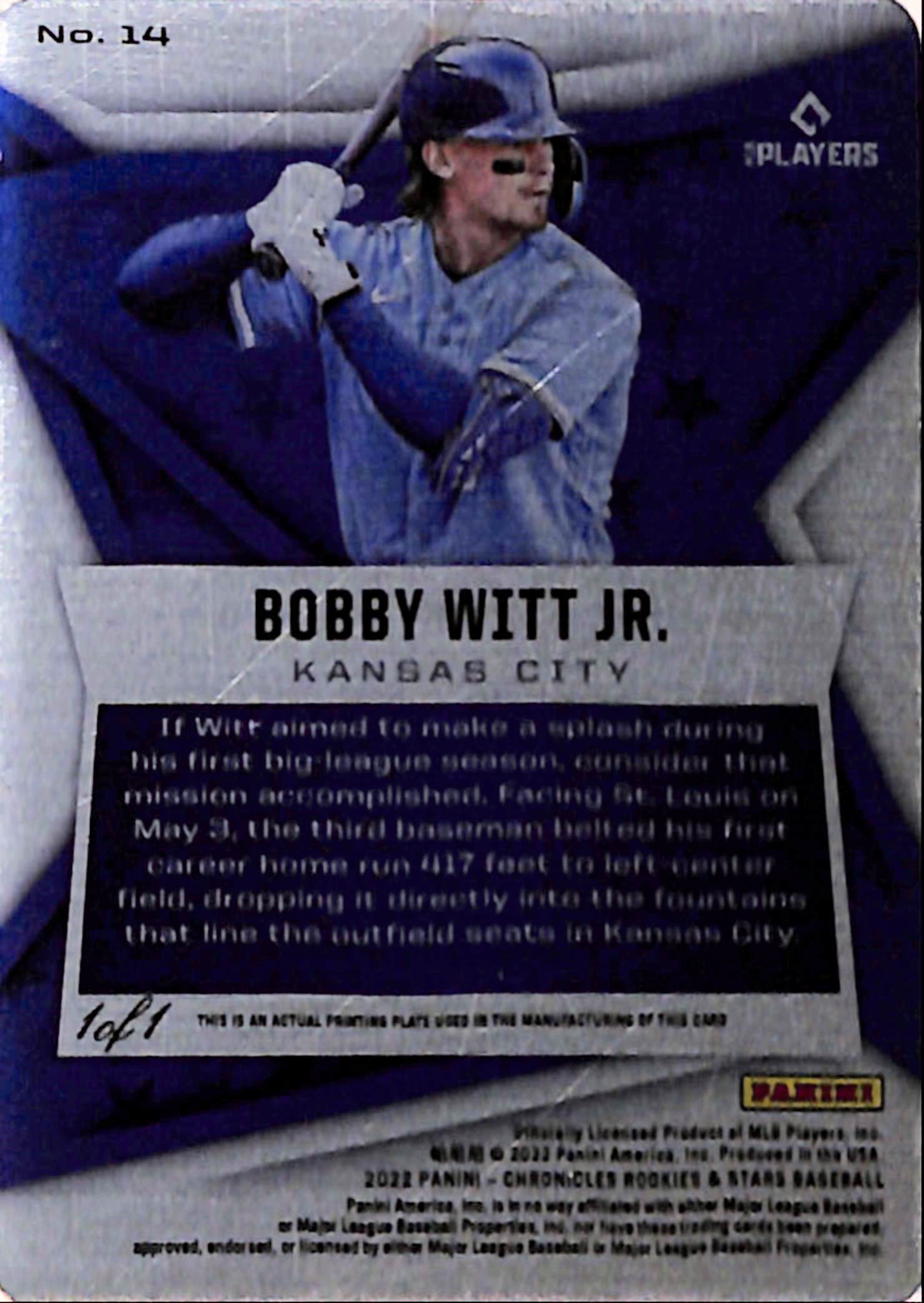 Bobby Witt Jr. 2022 Panini Rookies and Stars Printing Plate Rookie #1/1