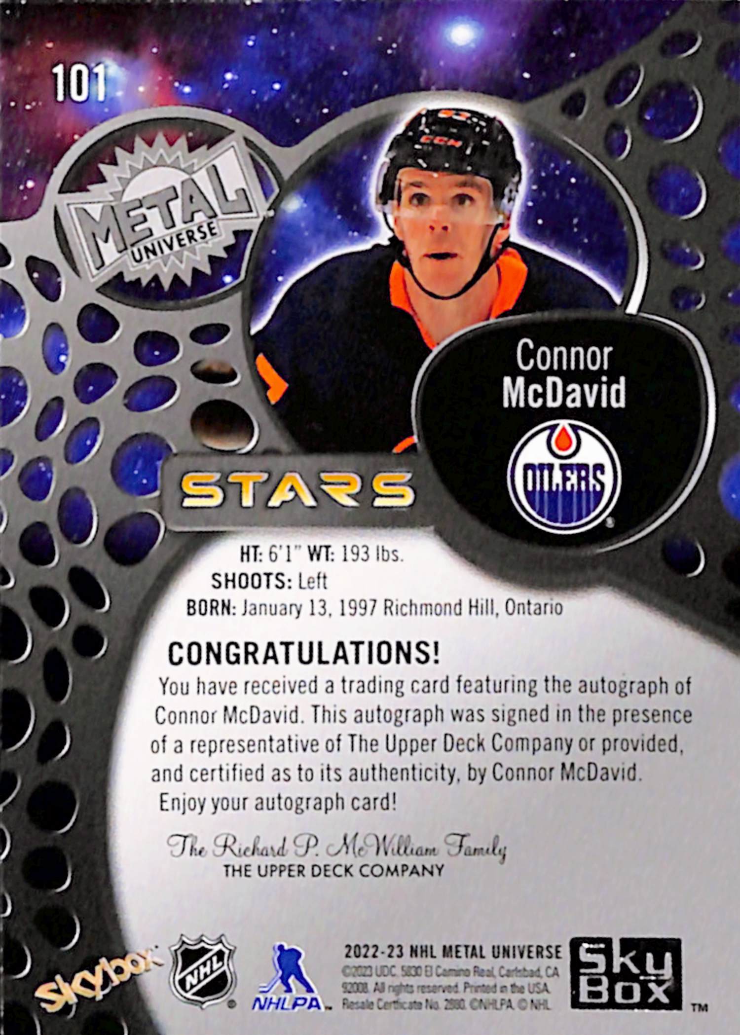 Connor McDavid 2022 Upper Deck Metal Universe Stars Autograph