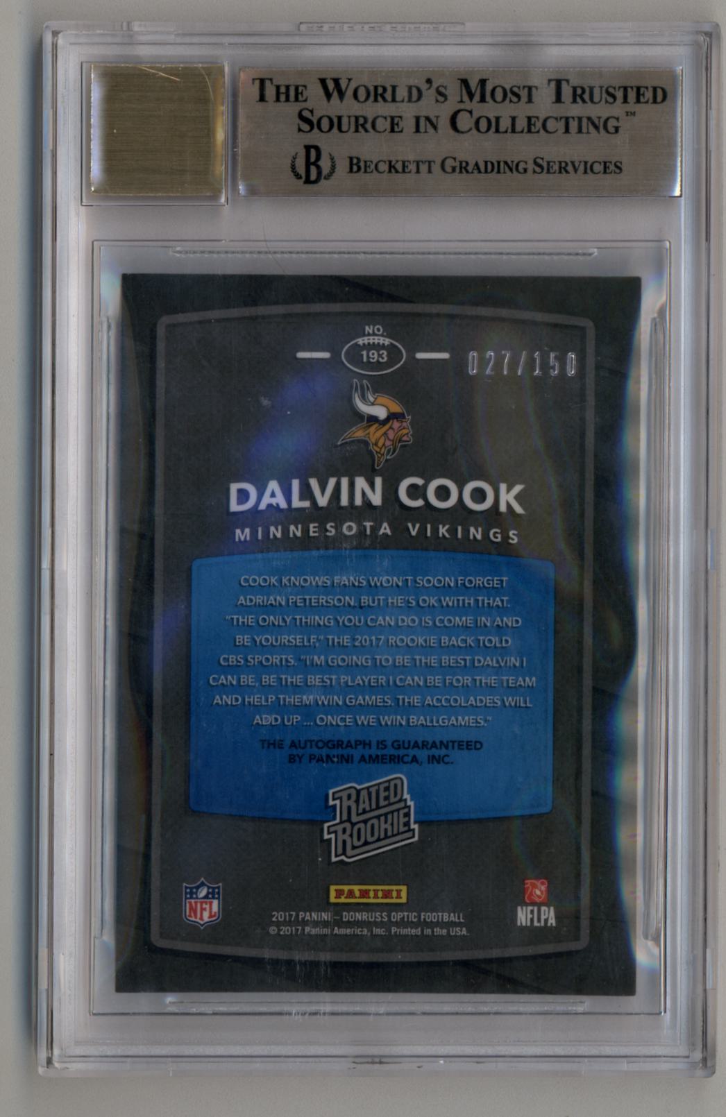 Dalvin Cook 2017 Donruss Optic Rated Rookies Auto 027/150 #193 BGS 9.5 Gem Mint