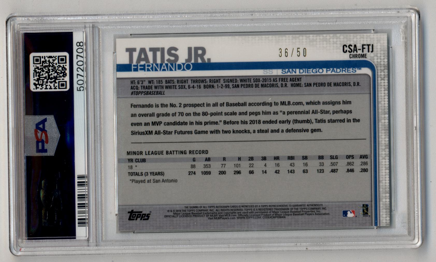 Fernando Tatis Jr 2019 Topps Chrome Sapphire Green Refractor Auto 36/50 PSA 10 Gem Mint