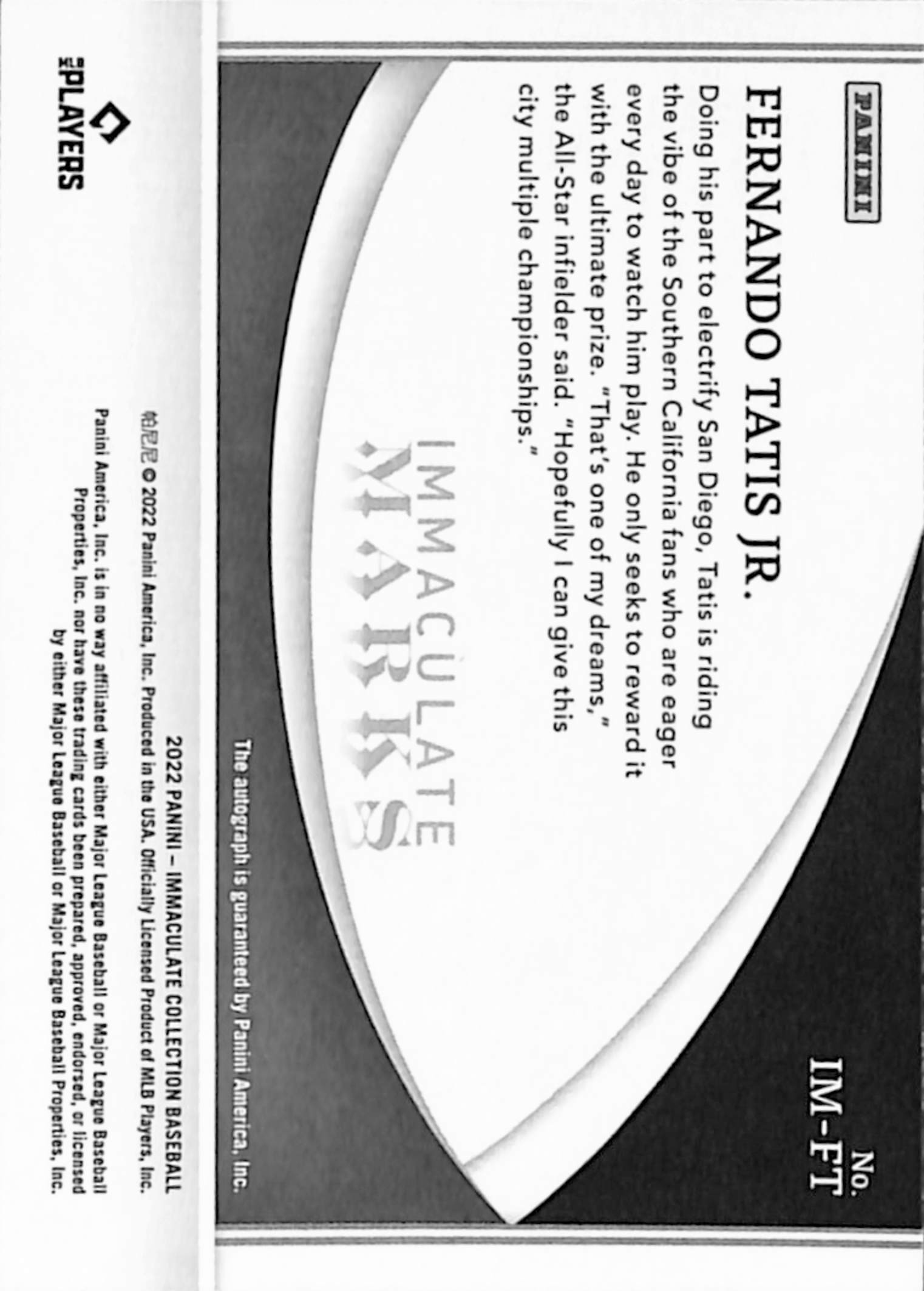 Fernando Tatis Jr. 2022 Panini Immaculate Marks Gold Auto #2/10
