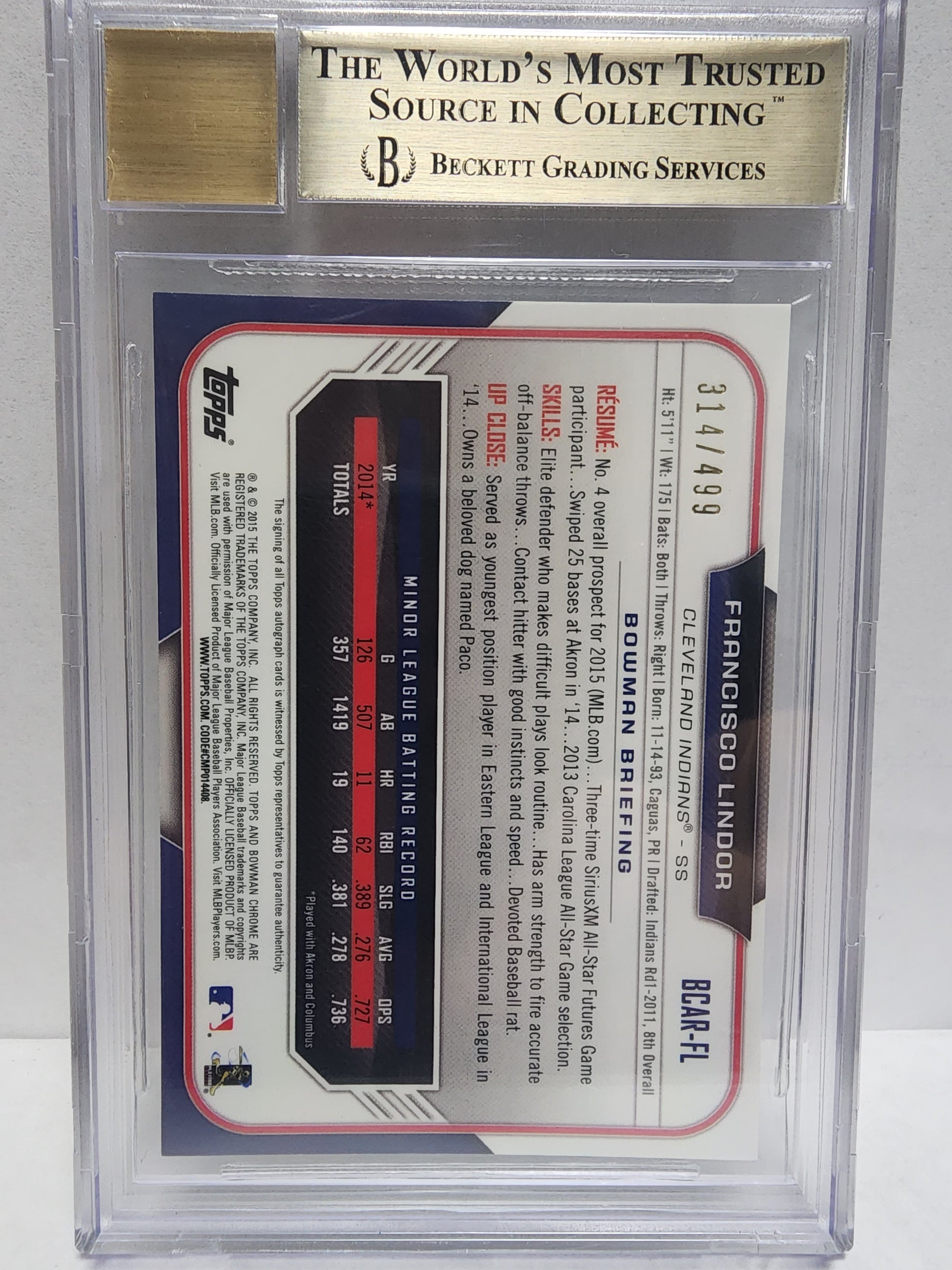 Francisco Lindor 2015 Bowman Chrome Rookie Refractor Auto #314/499 BGS 9.5 Auto 10
