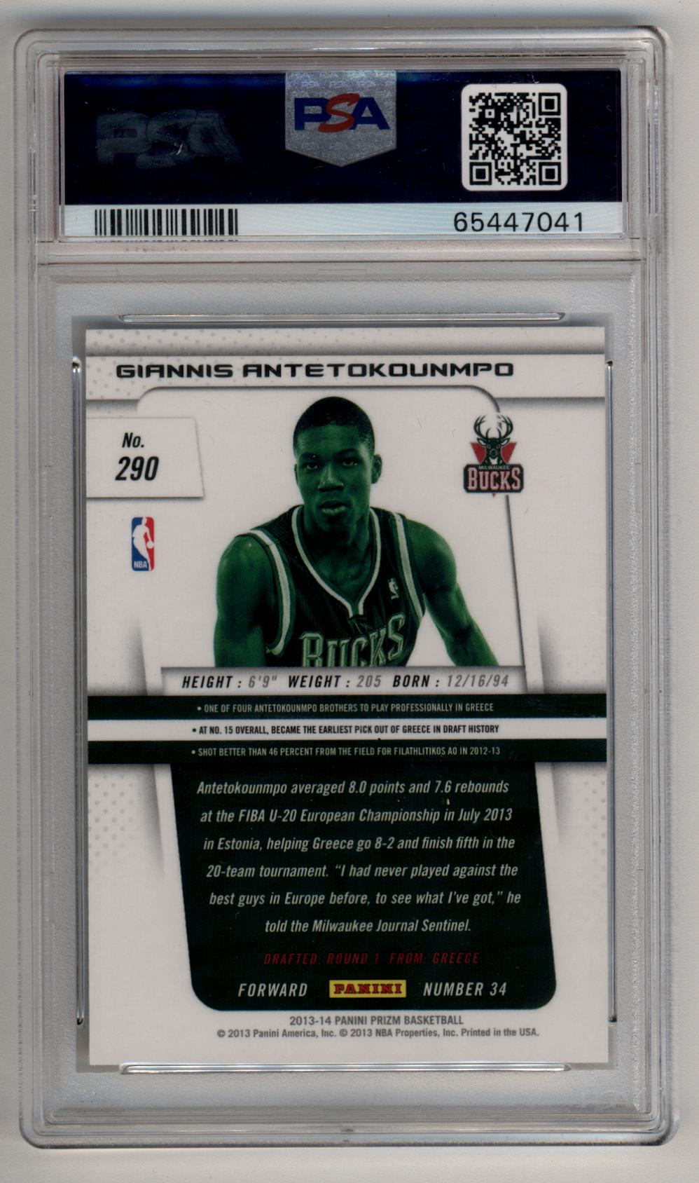 Giannis Antetokounmpo 2013-14 Panini Prizm #290 Rookie PSA 10 Gem Mint 7041