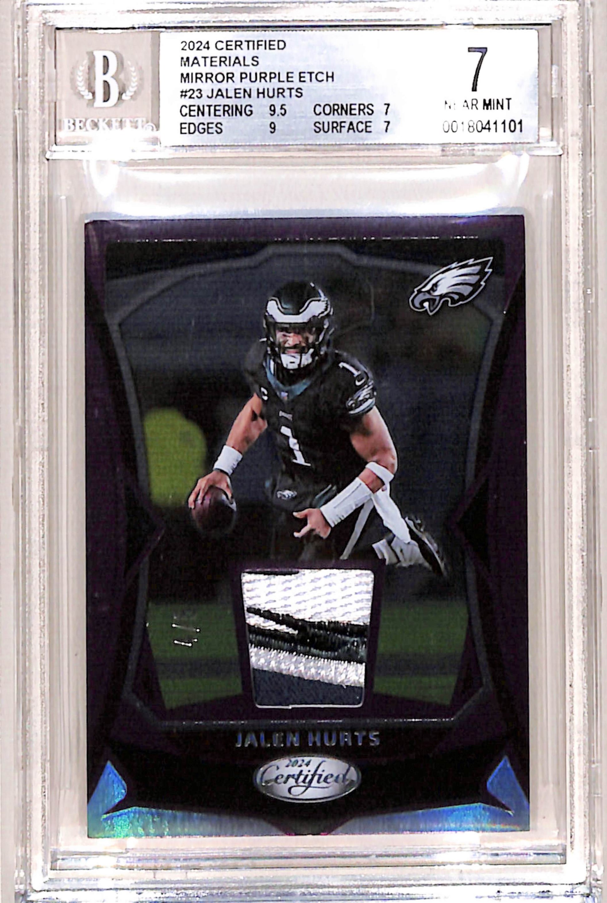 Jalen Hurts 2024 Panini Certified Mirror Purple Etch Patch #4/5 BGS 7 Near Mint