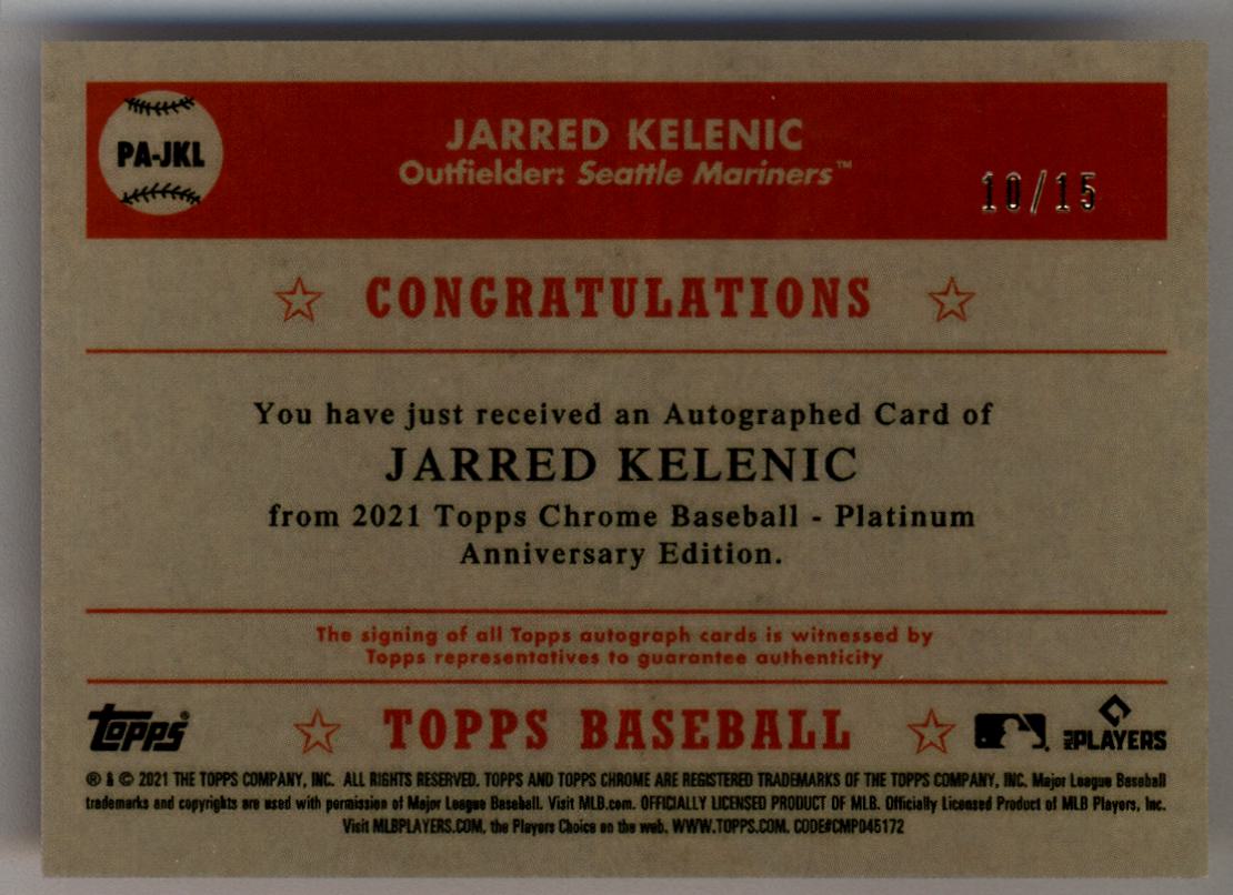 Jarred Kelenic 2021 Topps Chrome Platinum Anniversary Auto Pink Refractors 10/15