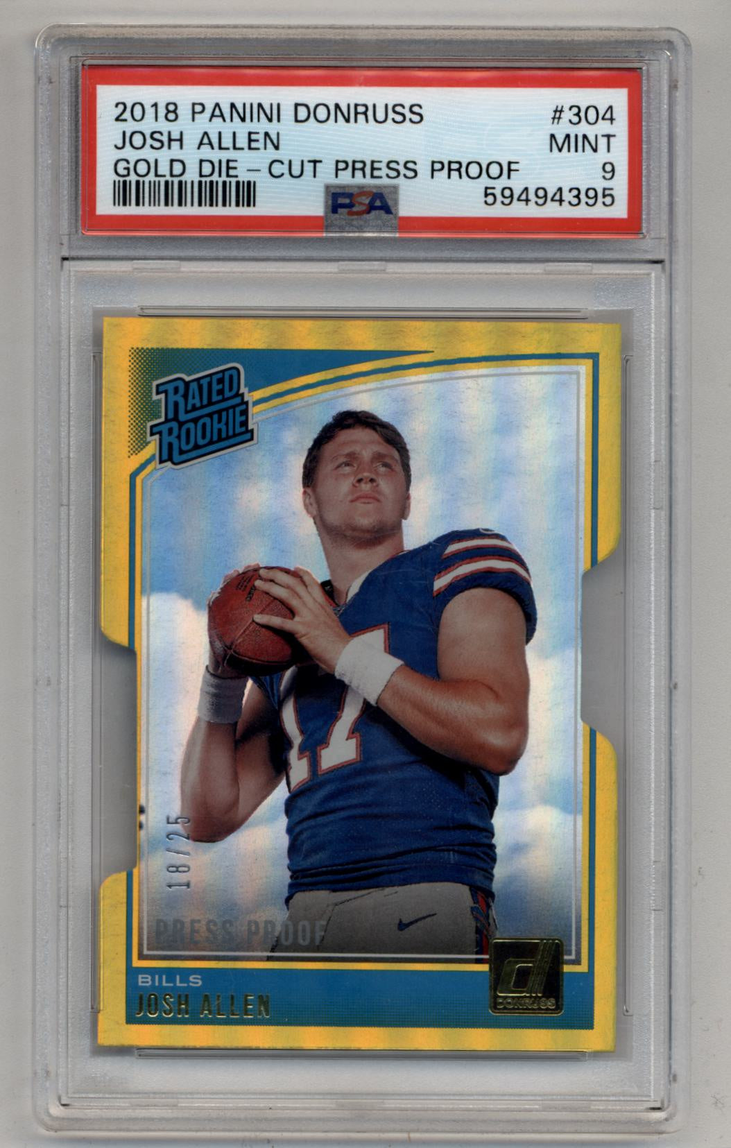 Josh Allen 2018 Donruss Gold Die-Cut #304 Press Proof 18/25 PSA 9 Mint