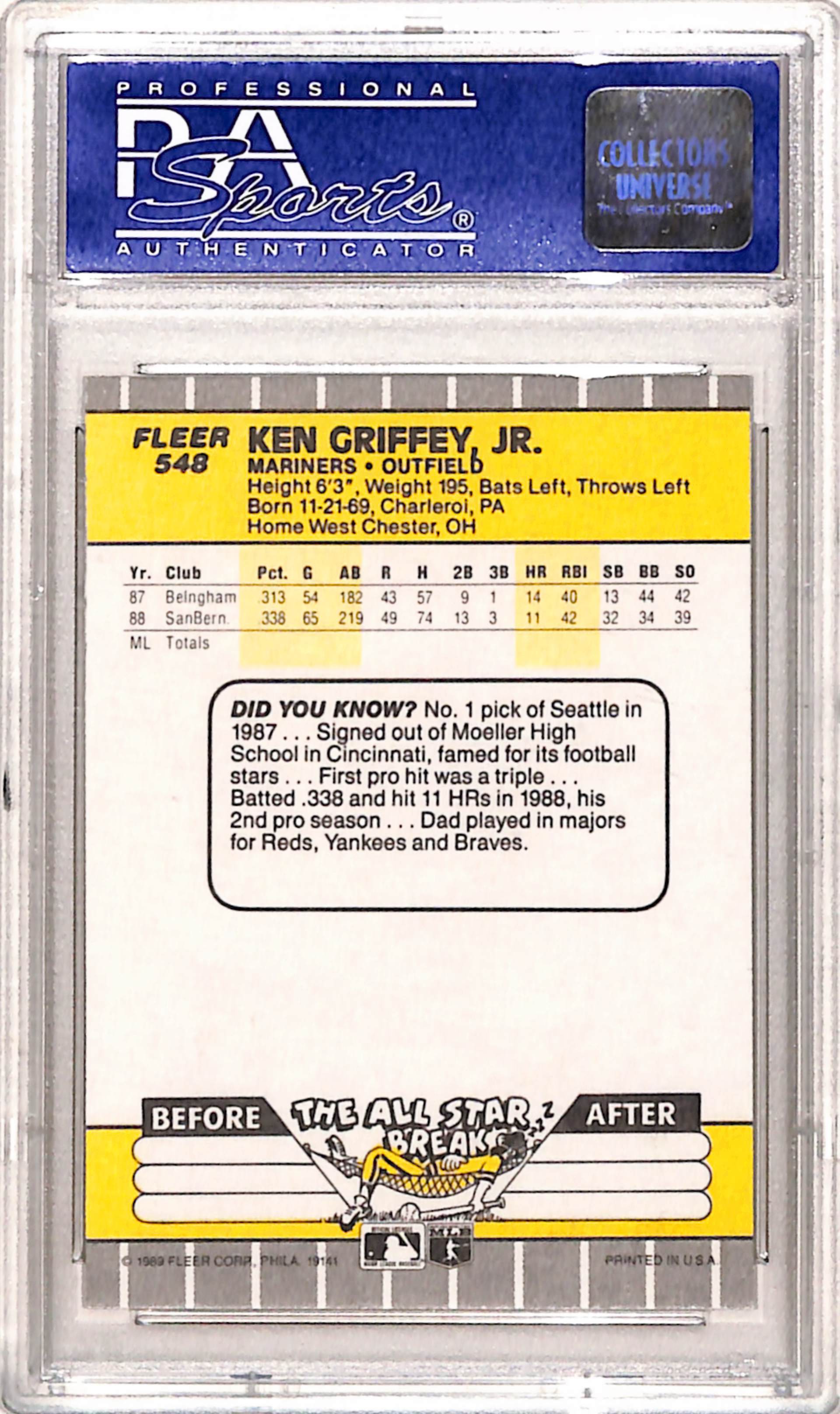 Ken Griffey Jr. 1989 Fleer Rookie #548 PSA 10 Gem Mint 7200