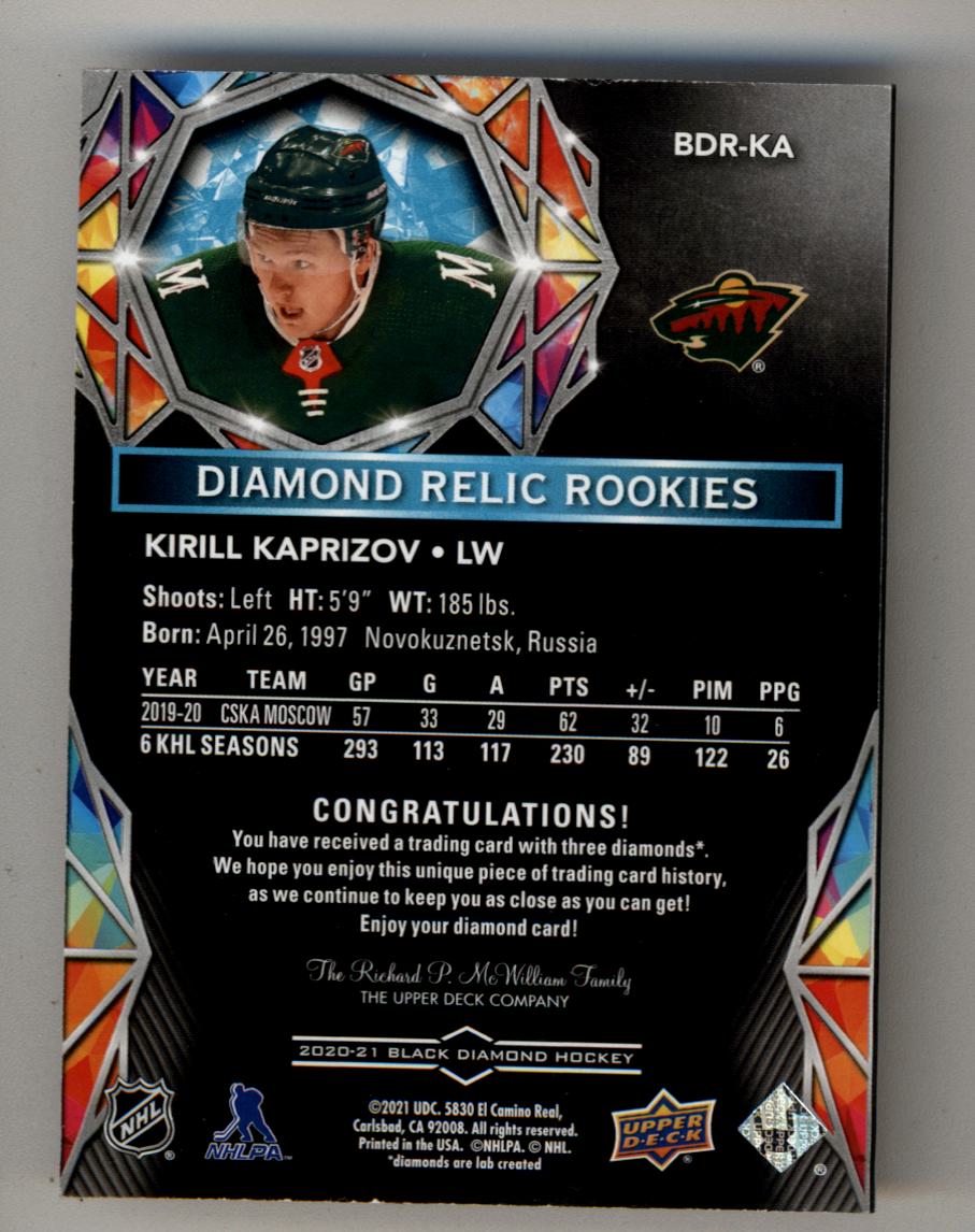 Kirill Kaprizov 2020-21 Black Diamond Triple Relic 5/9