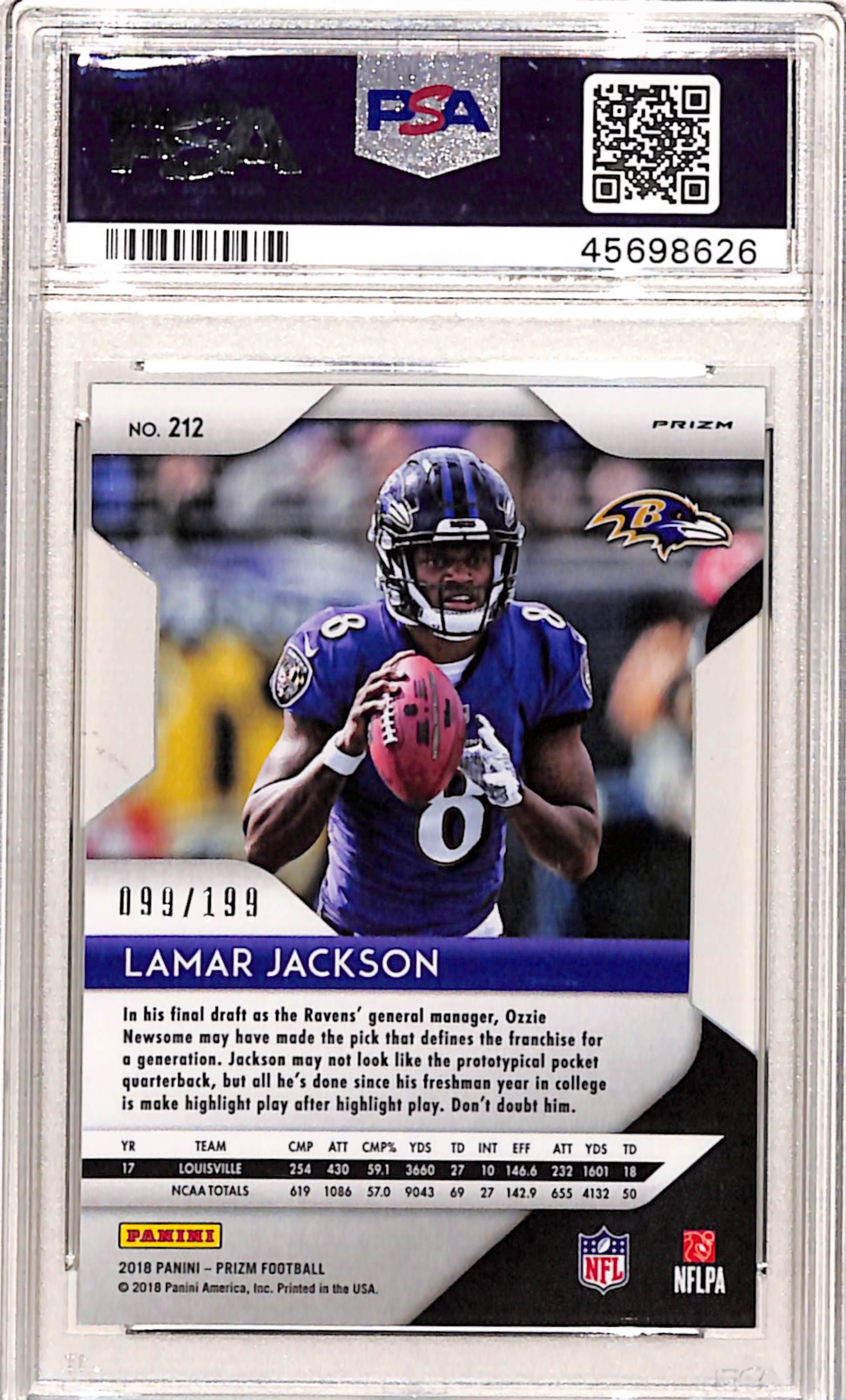 Lamar Jackson 2018 Panini Prizm Light Blue Die-Cut #99/199 PSA 10 Gem Mint