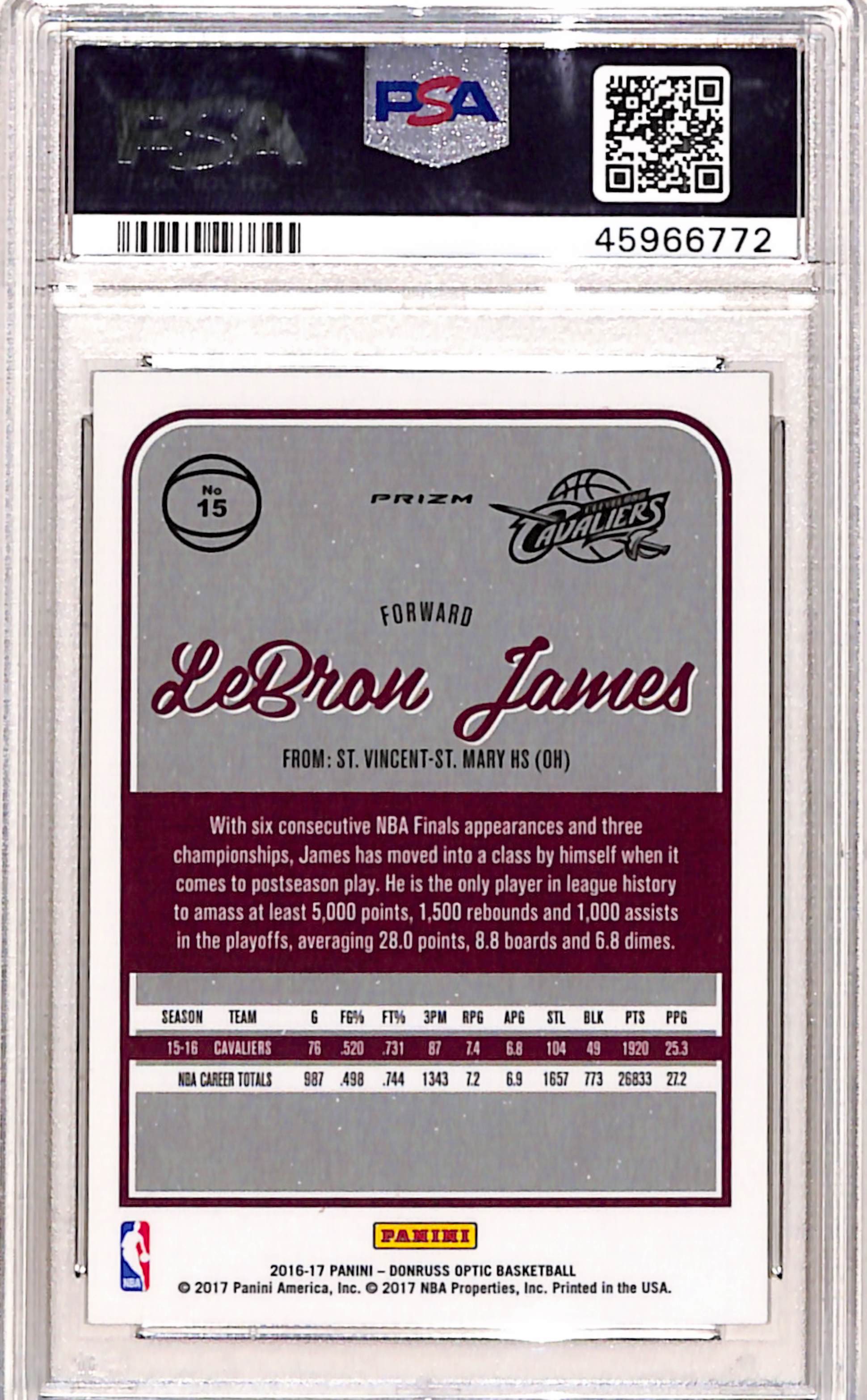 LeBron James 2016 Donruss Optic #15 Holo PSA 10 Gem Mint