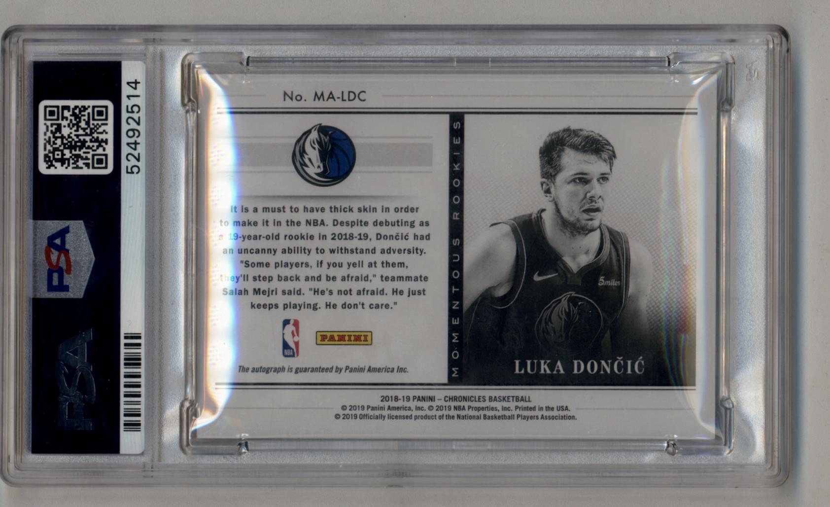 Luka Doncic 2018-19 Chronicles Momentous Rookie Auto 87/99 PSA 9 Mint