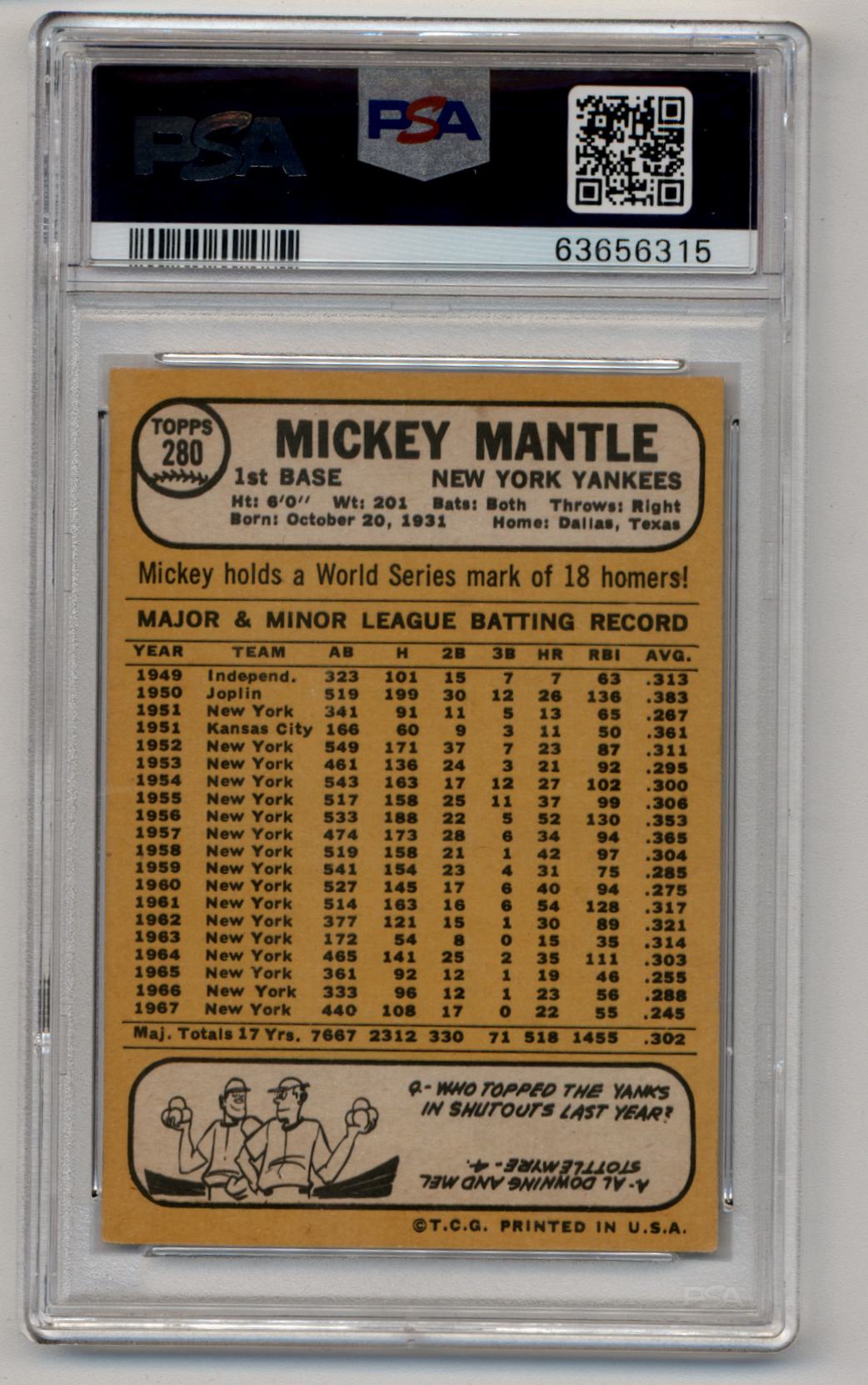 Mickey Mantle 1968 Topps #280 PSA 5.5 Excellent+ 6315
