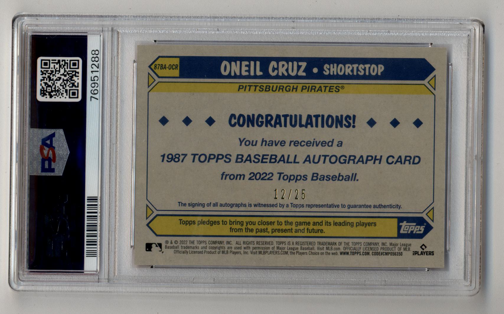 Oneil Cruz 2022 Topps Update '87 Topps Red Auto 12/25 PSA 9 Mint