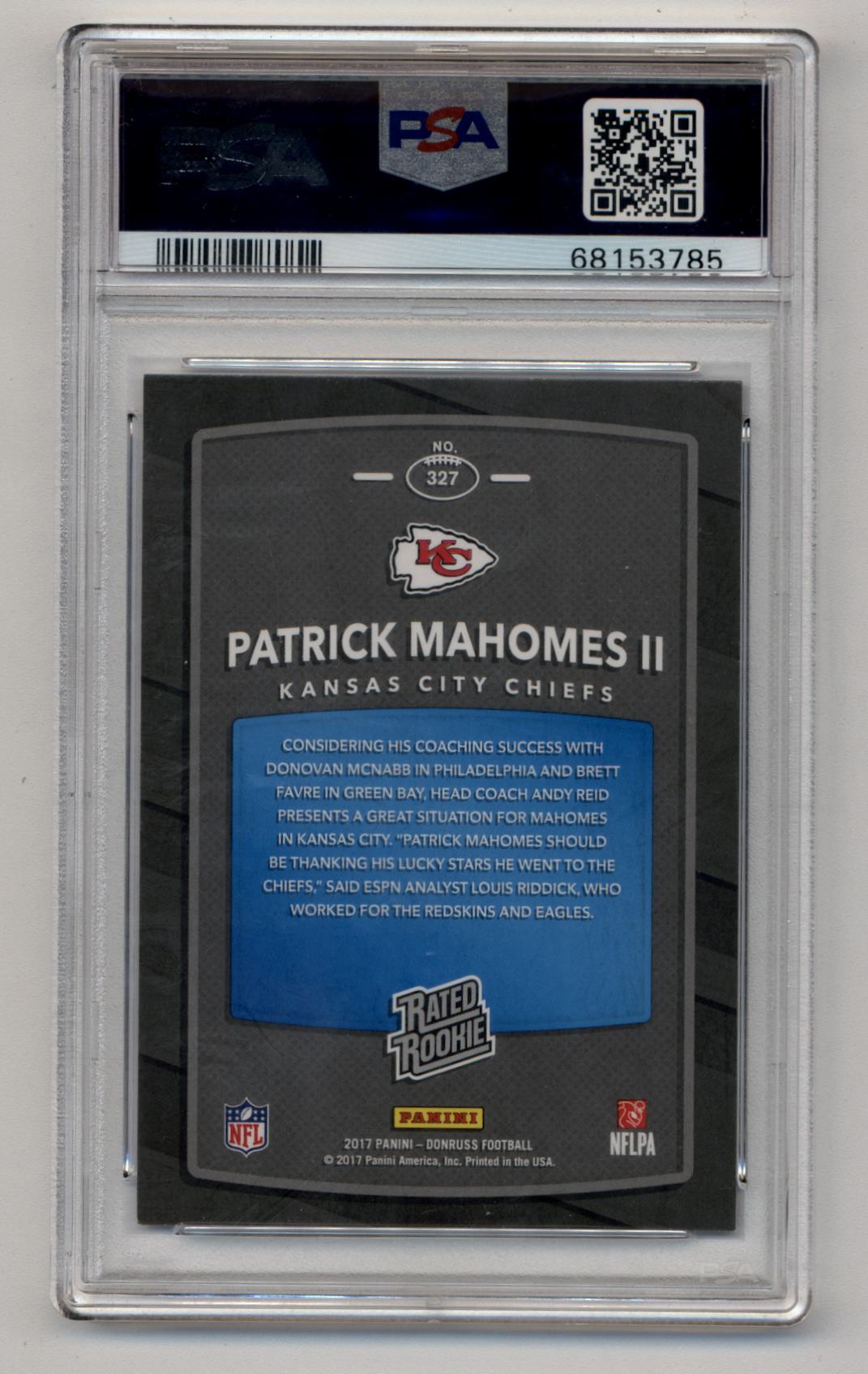 Patrick Mahomes 2017 Donruss Rated Rookie #327 PSA 8 Near Mint-Mint