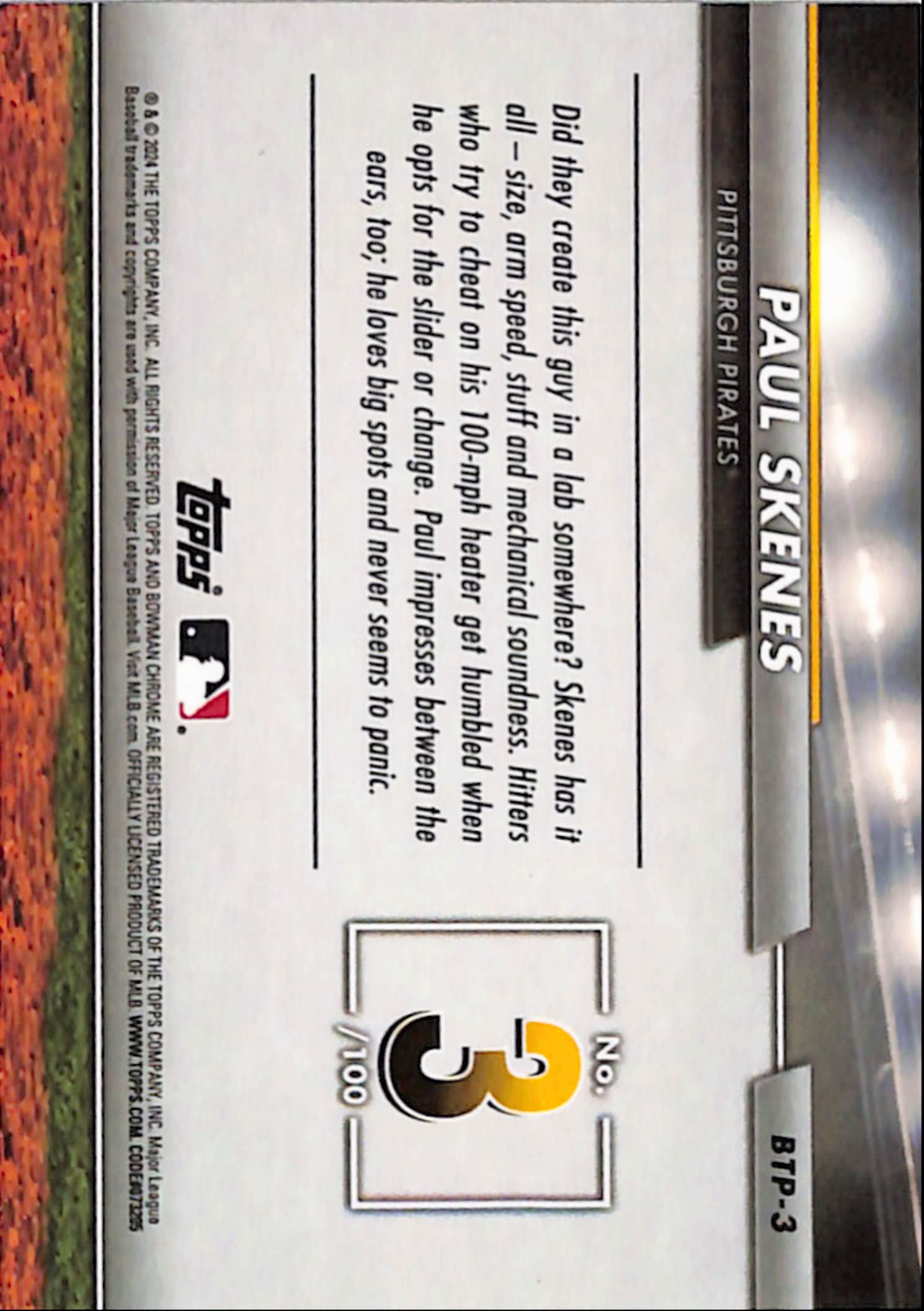 Paul Skenes 2024 Bowman Chrome Top 100 Prospects Gold Refractor #48/50