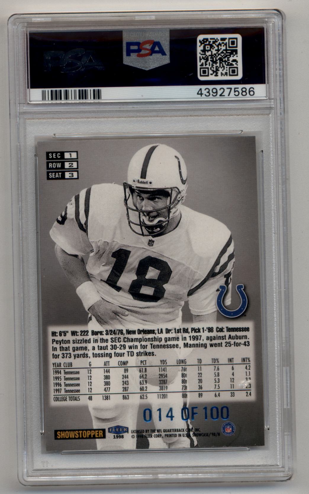 Peyton Manning 1998 Flair Showcase Legacy Collection Row 2 #3 14/100 PSA 6 Excellent Mint