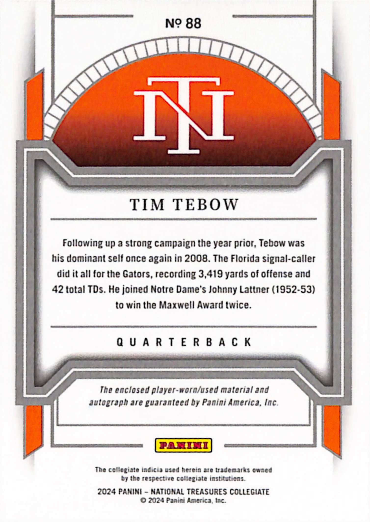 Tim Tebow 2024 Panini National Treasures Collegiate Jersey Auto #18/49