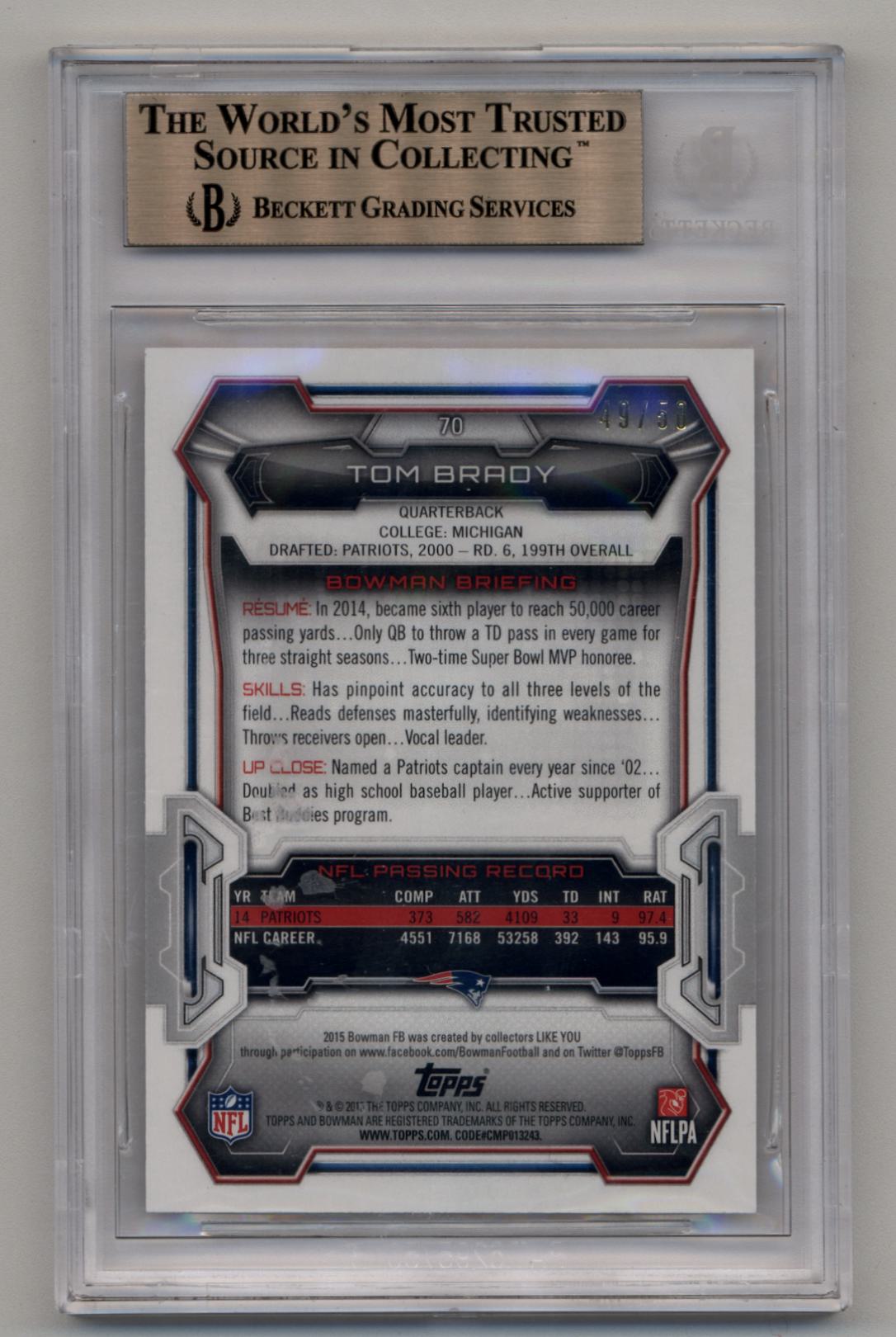 Tom Brady 2015 Bowman Rainbow Orange Ice 49/50 #V70 BGS 9.5 Gem Mint