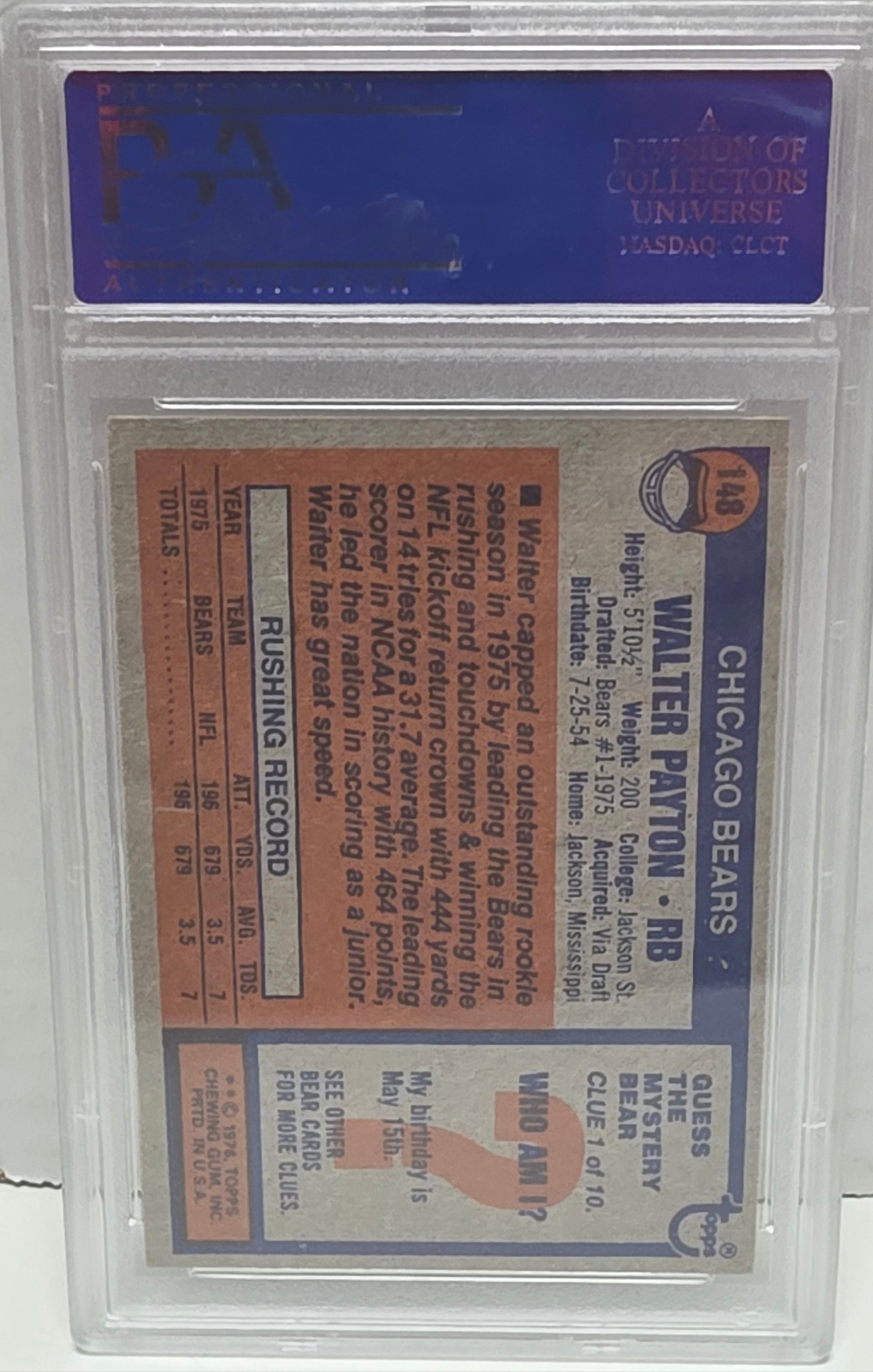 Walter Payton 1976 Topps Rookie #148 PSA 7 Near Mint 7561